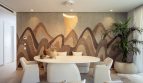 The open-plan living and dining area is wrapped in glass, dissolving boundaries between interior elegance and exterior calm. A fully fitted kitchen offers a true culinary atelier crafted with architectural finesse—its bespoke cabinetry and refined technology blend harmoniously to host everything from sunrise solitude to evening celebration.